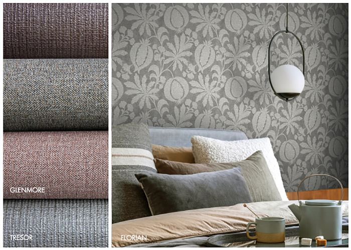 Their portfolio comprises several thousand designs, including deeply etched textures, metallic and iridescent surfaces, urban architectural finishes, large scale patterns and coordinating prints and plains.