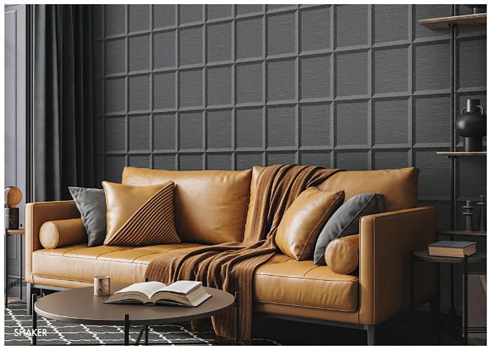 Big-scale Shaker is a clever mix of fine grasscloth, worked into a 3D effect. A great take on traditional craftsmanship merging with modern style.