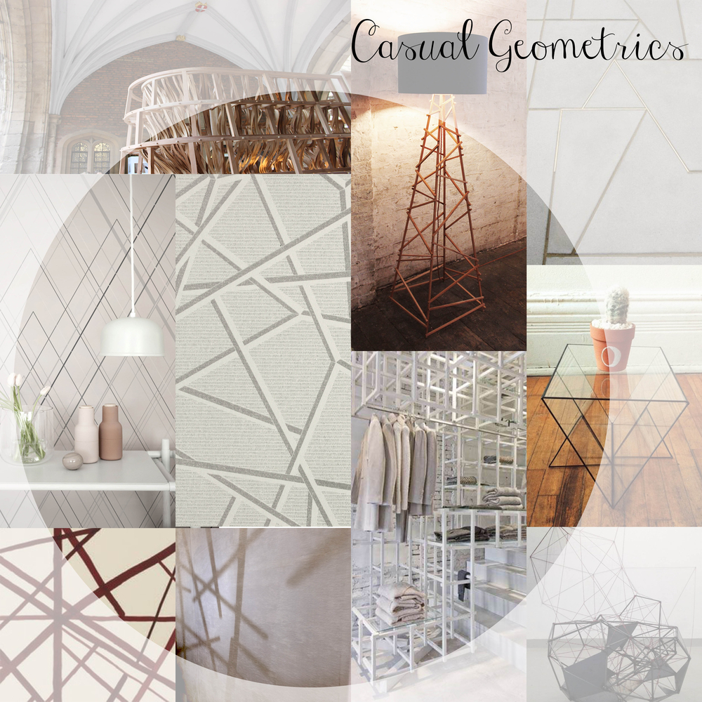 Casual Geometrics – The next generation of geometrics are organic structures and shadowy patterns. Large scale overlapping lines with a hand-built feel, and delicately constructed wire structures are airy and useable. Barely-there pastels and off whites, dull metals, shadowy tones, and raw wood dominate.