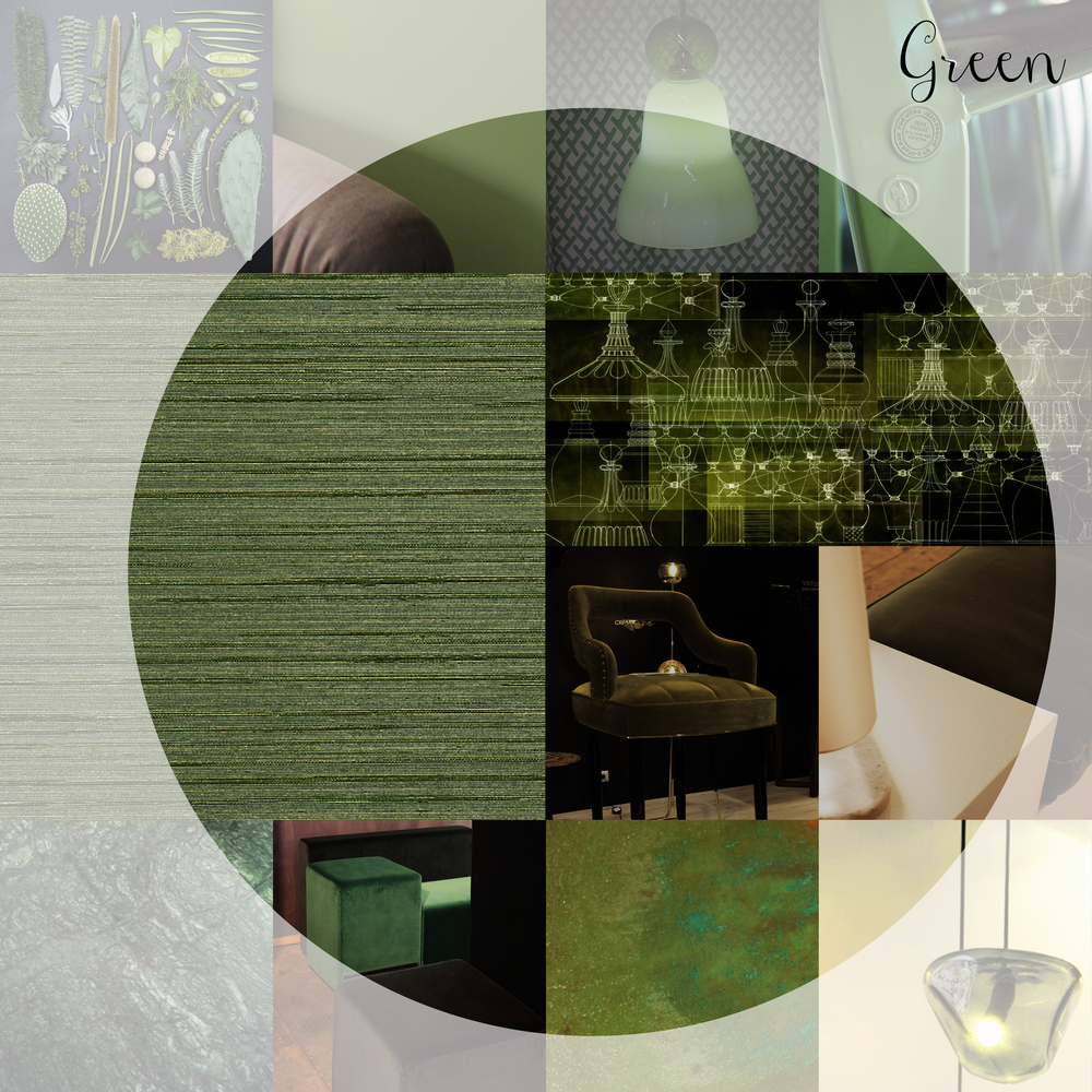 Green – A move away from citrusy chartreuse and lime, the new greens are warm and botanical. Calming and organic shades, particularly fresh pastels, vibrant jungle-inspired tones, silvery sage, and rich, velety grey green feel contemporary and look great with trendy warm metals like copper and brass.
