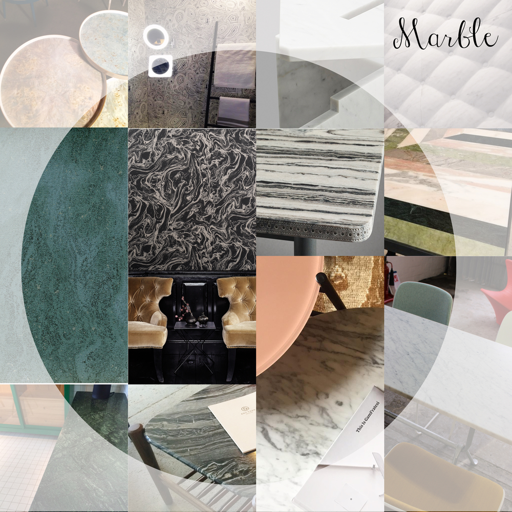 Marble – building on its already firm momentum marble continued to be a favourite at Clerkenwell and May Design Series. We spotted marble prints on fabrics, clothes, bed linen, stationary and even crockery. Black, white, nude and green marble featured on chairs, tables, walls, lighting and accessories. Most often we found the marble look paired with natural materials – glass, wood, metals, concrete, and copper tones.