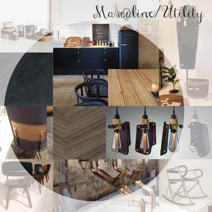 Masculine/Utility – This look focuses on fine materials, craftsmanship and function. Hardwearing, natural materials like stone, leather, raw wood and metal are key. Materials are flawlessly finished and refined, in stark contrast to the distressed surfaces that continue to be so popular. Hints of steampunk are starting to creep into the limelight… fusing the usability of modern technology with the design aesthetic of the Victorian era.