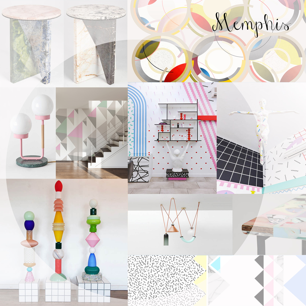 Modern Memphis – The Memphis movement is being revisited again in both fashion and interior design. Bold colours are paired with geometric shapes, playful patterns, and surprising material combinations – the look is optimistic, kooky and very contemporary.