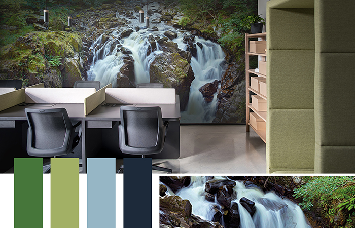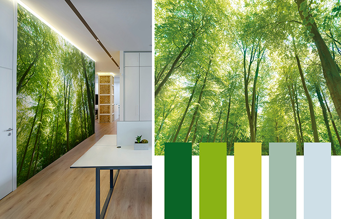 Their 5 latest Richard Osbourne murals are where we see the next step in biophilic design heading – a different take on colour, perspective and design – each mural brings something new to the world of biophilia.