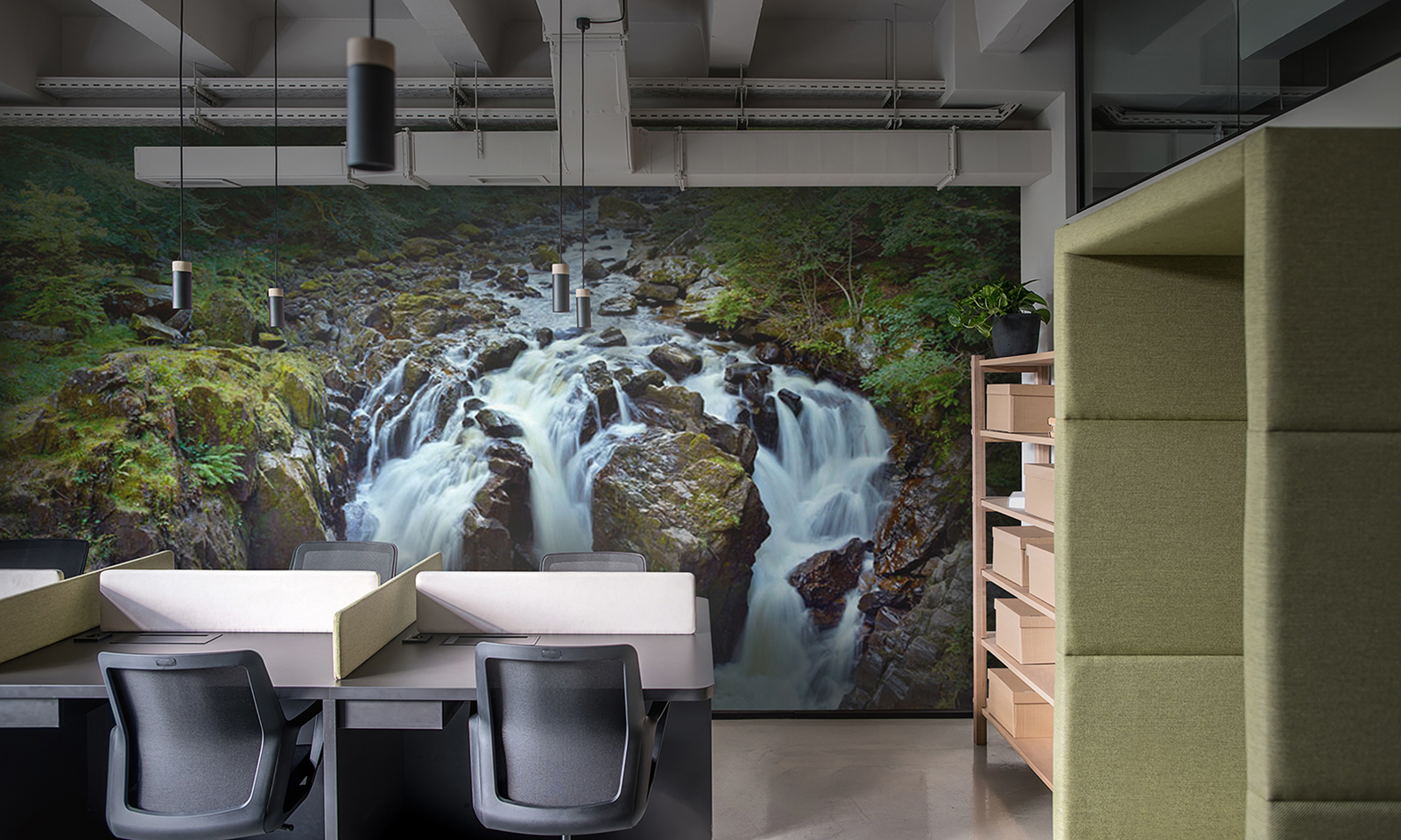 Scramble over the rocky rapids and be transported into the lush and wild landscape of their new Waterfall photographic mural. Available as wallcovering and window film, Waterfall can be scaled up to 3 x 6.25m.