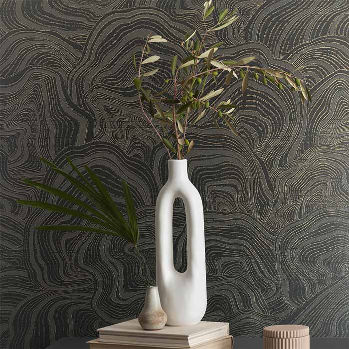 The deep texture of Carved in Stone is marked by pearly and metallic highlights. The design and colourways are reminiscent of onyx and agate.