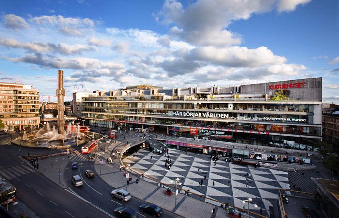 Designed by Peter Celsing in 1965, this modernist city square has the aura of the “brave new world” Kulturhuset at its heart. Celsing was a student of SIgurd Lewerentz, who some attribute within his work the starting point of Brutalism. The area around Sergelstorg was all replanned and rebuilt in the 1960s and 1970s and is at odds with the majority of areas in central Stockholm which are predominantly 19th and early 20th century. This building stands in stark contrast to the rest of city’s highly romantic, Belle Époque architecture.