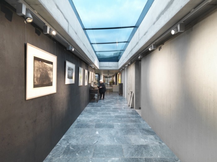 The concrete building cuts into the side of the hill and merges with the beautiful landscape thanks to the meadow roof and underground living space. Sustainable and energy efficient, the interior features the streamlined Laufen Pro S range, including the new Pro S WC with its innovative flushing system which uses a minimal amount of water to effectively flush.