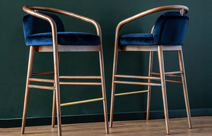 “I love the distinctive back shape of the side chair and high stools in this collection. The splayed arms are also beautifully shaped on the armchair and lounge chair, making this a unique range. The metal or wooden base options offers versatility, great for dining environments.”