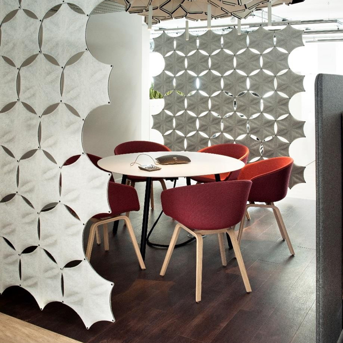 In terms of the office environment, other things to consider are acoustic solutions. These include free standing barriers as well as those that are wall or ceiling mounted. The use of sound masking is also increasing because as offices become more social, they become noisier too.