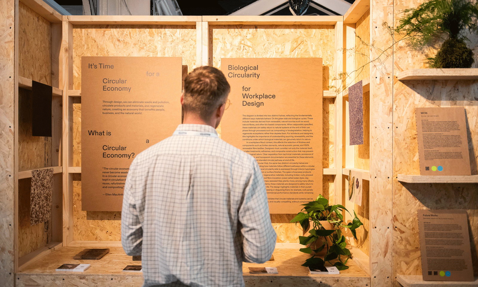 The answer was The Circular Hub, an outstanding installation and a clear highlight of the show, designed by MCM Architecture and Future Works, both B Corps, in partnership with Nested Living, a regenerative design studio. More than a temporary exhibition feature, the space stood as a compelling example of what the future of workplace design could look like. Through this installation, Ana Rita Martins and her team demonstrated not only an expert ability to communicate complex ideas clearly, but also a determination to push the conversation forward across the commercial interiors sector.