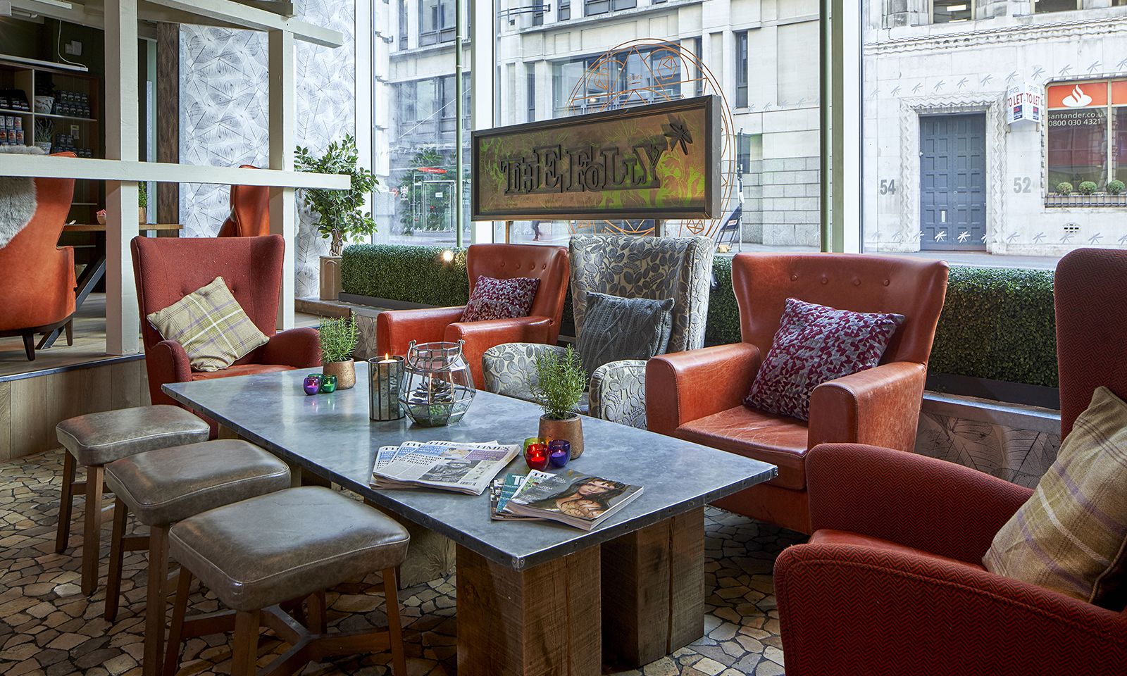 Newmor have supplied a bespoke re-colouration of their Leaves wallcovering for this eclectic, botanically inspired city haven. The Folly in London is a garden-influenced restaurant, deli and bar, where the seasonal menu has international flavours.