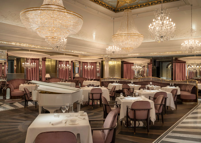 Spanning 10,333 square ft on the fourth floor of Harrods, the redevelopment, led by David Collins Studio and the Harrods in-house development team, honours the heritage of the building, preserving much of the Art Deco architectural grandeur of the room, while adding more touches of glamour, style, opulence, quality and comfort. Seating 164 covers, including the gilded outdoor Georgian terrace, there are 25 beautiful chandeliers throughout, creating a fairytale lighting environment. An entertainment programme throughout the day adds to the sophisticated ambience – a central piano is played through the tea service, and the music evolves into an evening repertoire inspired by the history of the room, including the Jazz Age of the 1920s.