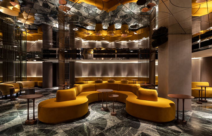 There is also a two-screen cinema, a 1,000 capacity pillarless ballroom and an event space for corporate hire or private parties with a bespoke half honed half polished green marble floor and unique, fabric clad wavey walls.