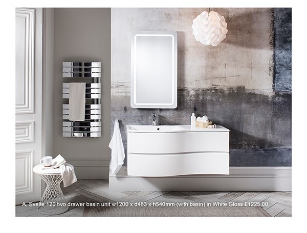 Boasting expansive worktop space and deep double drawers Svelte offers practical and extensive storage space with generously sized proportions to house all bathroom essentials. Beautifully constructed, the top drawer of the vanity unit has a cleverly designed cut out space for the basin waste, ensuring you don’t lose out on any crucial storage space. The graceful curves and silky smooth basin surface evoke a feeling of elegance, bringing a touch of chic style to contemporary or even more traditional bathroom designs. Up to the minute technology and soft close drawer runners provide gentle, smooth and quiet closure.