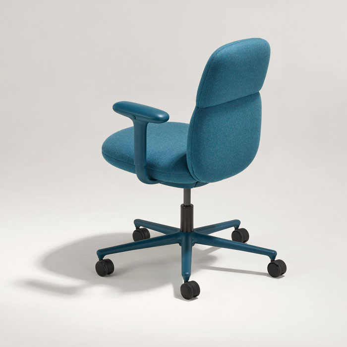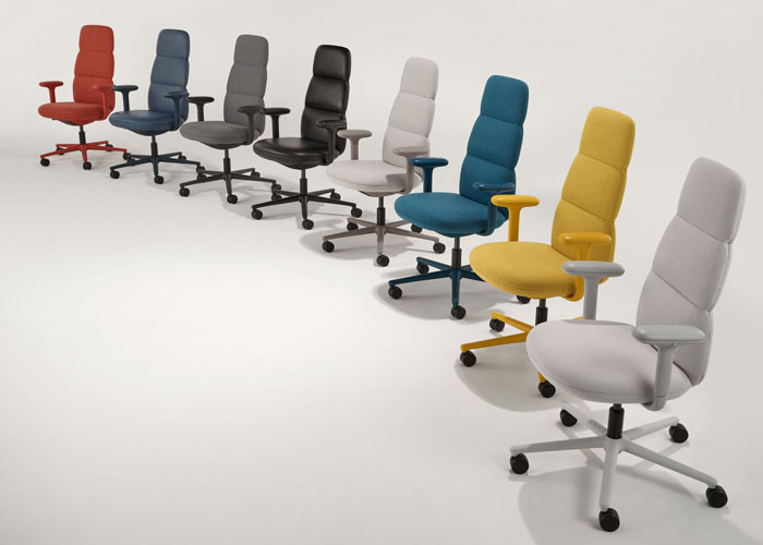 Asari was inspired by organic forms found in nature. Its name means “clam” in Japanese and is an anthropomorphic metaphor for the shape of the chair’s back, which is available in high- and mid-back height. Eight color flood options accentuate the sculptural form by featuring one hue across the base, arms, and chair body. Bespoke blended options are also available, with over 180 color combinations available to contract customers.