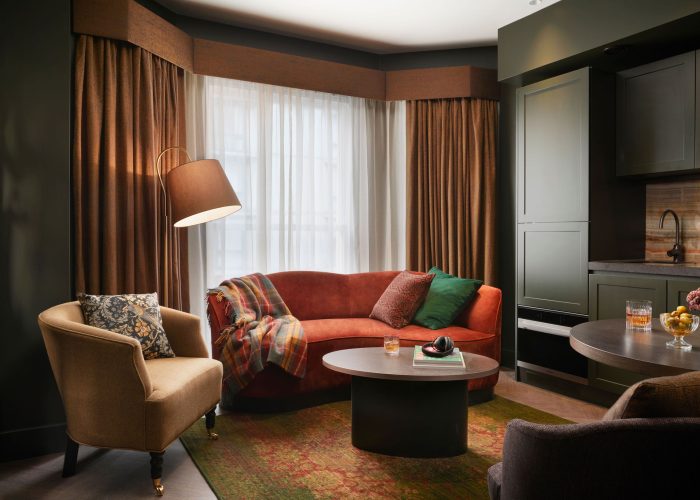 Furniture, fittings, and fabrics throughout the Residents’ Club, from the front of house to the Club Flats are from British design houses. The inspirational living spaces are dressed in a rich colour palette layered with velvets, British tweed and wool, and feature a panelled sitting room, fully equipped kitchen/diner, a bedroom and elegant shower room.