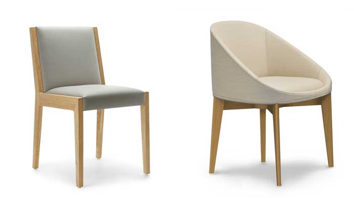 Left: Lyndon Keats is an occasional timber framed seating collection that is available with or without arms, Keats offers the ultimate in comfort and luxury courtesy of a seat recess that carries additional foam and a curved and contoured back design. Right: Lyndon Orlo’s smooth curves and simple lines reflect perfectly the design philosophy of David Fox.