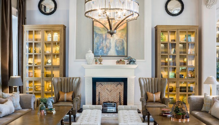 The interior design focused on creating a modern interpretation of a country house, featuring over-scaled furniture, such as large wing chairs, to embrace a sense of welcome. This is combined with a light and soothing colour palette with small amounts of texture and pattern within the furniture for added interest.