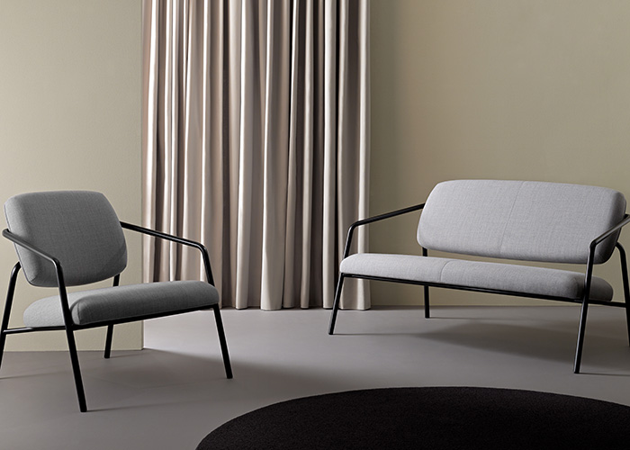 “Eco leather and a black frame are an enticing combination for premium hospitality spaces, while textured wool fabrics take Rosa in a cosy, intimate direction. Light shades and smooth fabric make Rosa equally appropriate in office lobbies, breakout and work café areas,” says Mark Barrell, Design Director.
