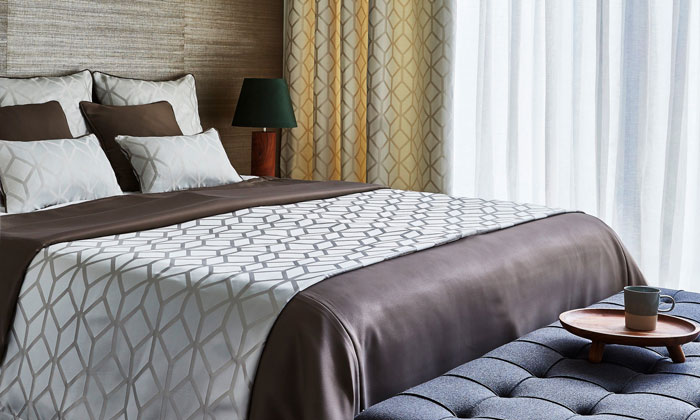 The designs pair effortlessly with natural wooden accessories or dark industrial furniture to offer a modern minimalist look. The interior is completed with bright, natural lighting softened by sheer fabrics such as Cityscape, Platform and Enamel.