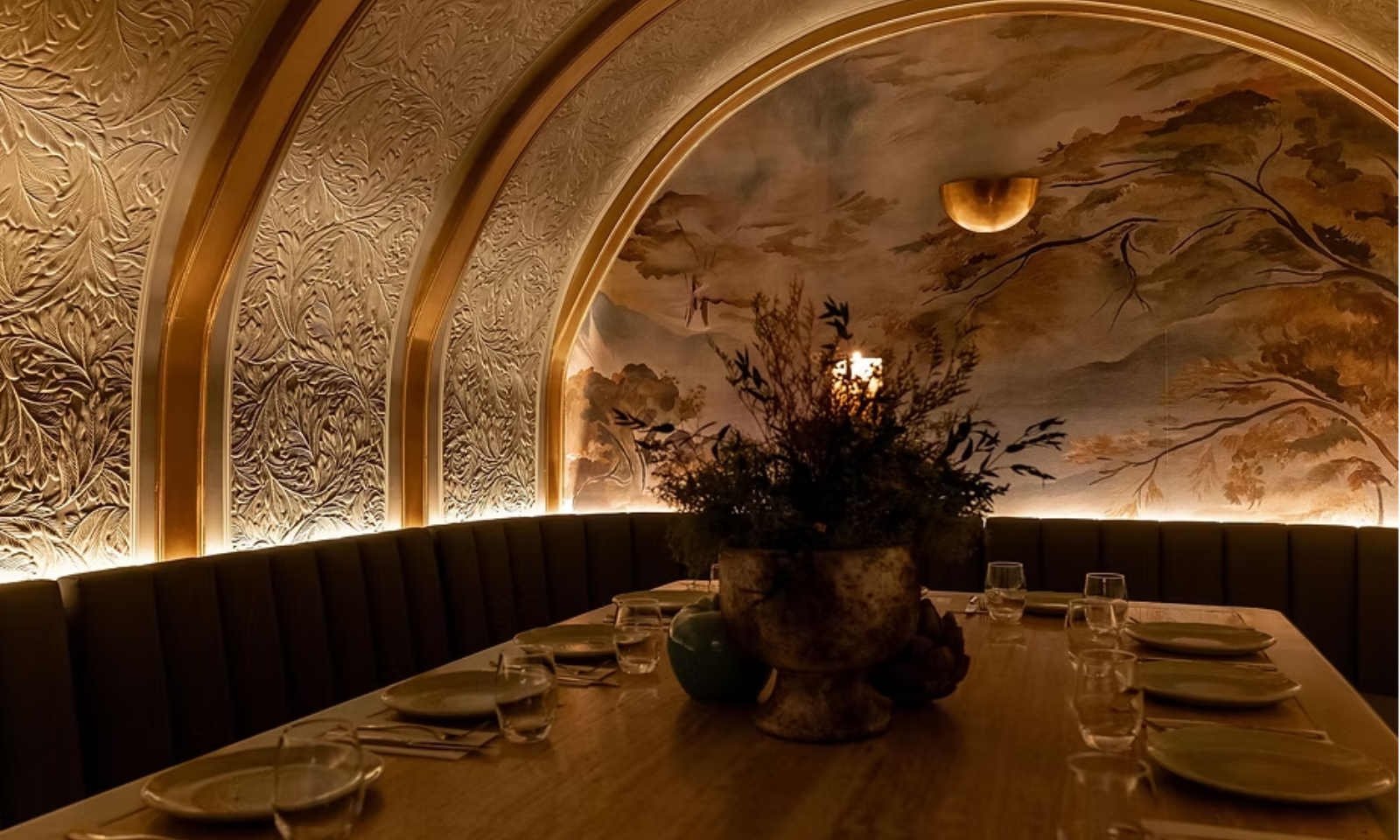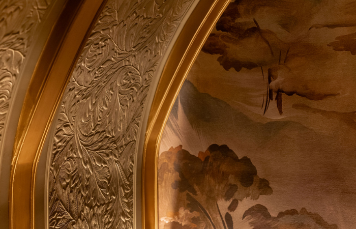 “ornate embossed wallcoverings provide some of the project’s most defining visual moments as seen in the vaulted ceilings. These deeply textured surfaces resemble heritage plasterwork yet offer more flexibility and durability for contemporary use.”