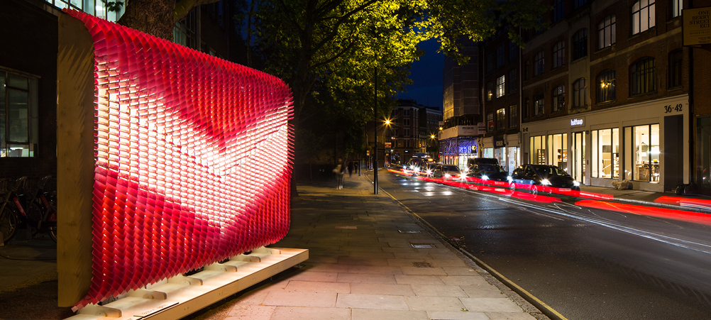 The generously-sized sculptures, which were approximately 3.3m wide x 2.4m high, were located at key CDW destinations including Kingsway Place (outside the House of Detention), Clerkenwell Close and Clerkenwell Road (opposite Vitra).