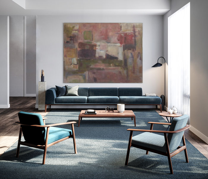 “From a contemporary fabric set within an oak frame to a supple leather in a walnut frame, this product can suit a whole spectrum of environments – either as a statement piece or as an element that generates a specific atmosphere within a designer or architect’s vision,” says Phil Bennett of the Lyndon design team.