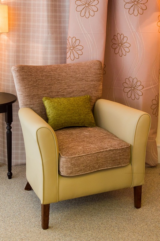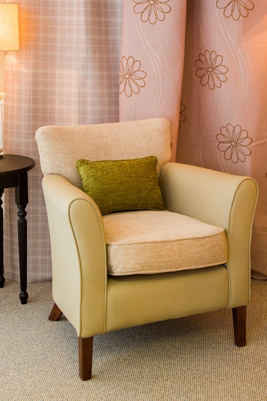 Furniture features a contrast of colour to help see where the chair starts and ends as well as contrasting to the floor; avoiding patterns and sparkles as these could cause confusion and could look like something to pick up. Designing flooring with a tonal contrast throughout a home will provide a dementia friendly passage.