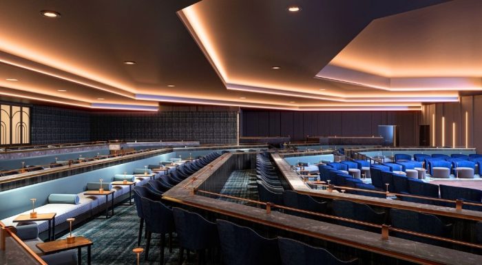 The design theme for the hotel was a glamorous 1970s studio vibe, with bold patterns, rich velvet fabrics, and gold accents. To align with this vision, we produced bespoke loose furniture for the Market Kitchen, Brasserie32 Bar & Restaurant, and Live Lounge. By blending our expertise in sourcing design-led furniture with our in-house manufacturing capabilities, we were able to meet the very specific style requirements. We provided a wide range of custom upholstered furniture, including our Alice and Bergen Lounge Chairs, which now add a touch of retro elegance to the Live Lounge Theatre.