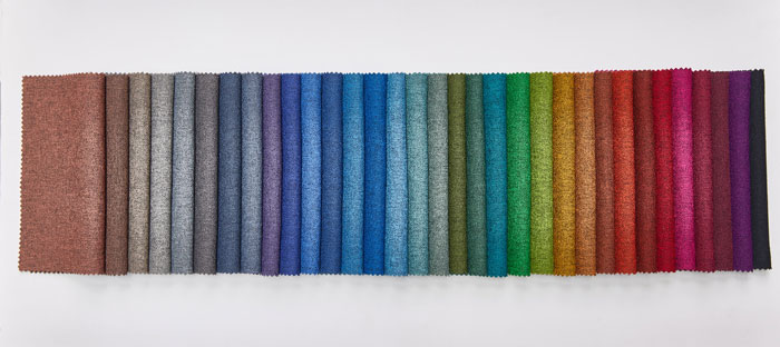 The fabric’s new colour palette embraces warm berry tones, cool blues, mauves, and turquoises, as well as subtle earthy shades, providing a colour scheme for every interior. The black base yarn in X2, composed of textile-to-textile waste, creates a textured grey mélange effect, reminiscent of a high-end wool, adding surface appeal and dimension.