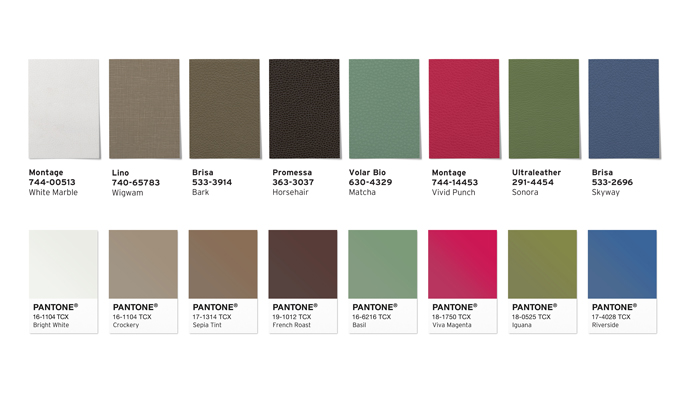 The Ultrafabrics Awakening palette products alongside similar Pantone shades
