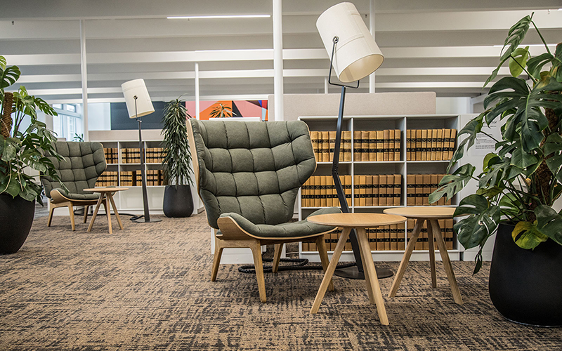 It’s a well-known fact that well-being and productiveness are paramount when designing a space that is meant for work, learning and reading. So when in-house designer, Peter Schjøtt Andersen wanted to soften the noise levels in the library building he needn’t look further than Ege Carpets and their ReForm Memory Ecotrust carpet tiles.