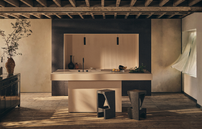 With the launch of LCI comes the debut of a new material, Elenite. This premium solid surface is produced from post-industrial, natural waste materials, including walnut shell, walnut dust, and bamboo fibre. Created in partnership with Taiwan-based manufacturing specialists, Meganite, Elenite cuts embedded carbon by 29%, and future batches are already in development to increase that reduction to 50%. The range comes in four earthy shades, which are made using natural pigments, while no silica, formaldehyde, or water is used during manufacturing. What’s more, any waste generated is fed back into the process, creating an optimum circular production process.
