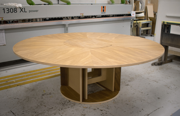 Additional off-cuts have also been used to produce the base, thus reducing the need for virgin steel, as well as minimising scrap. The resulting 2000mm diameter table looks like an entirely new piece, and a striking centre piece for any boardroom.