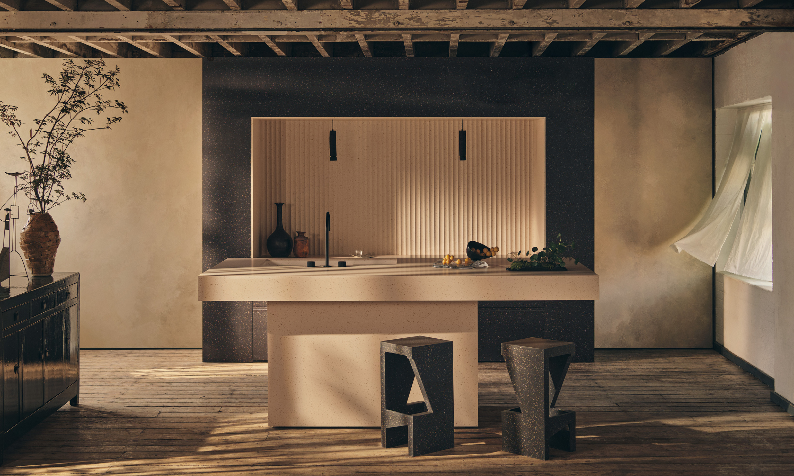 With the launch of LCI comes the debut of a new material, Elenite. This premium solid surface is produced from post-industrial, natural waste materials, including walnut shell, walnut dust, and bamboo fibre. Created in partnership with Taiwan-based manufacturing specialists, Meganite, Elenite cuts embedded carbon by 29%, and future batches are already in development to increase that reduction to 50%. The range comes in four earthy shades, which are made using natural pigments, while no silica, formaldehyde, or water is used during manufacturing. What’s more, any waste generated is fed back into the process, creating an optimum circular production process.