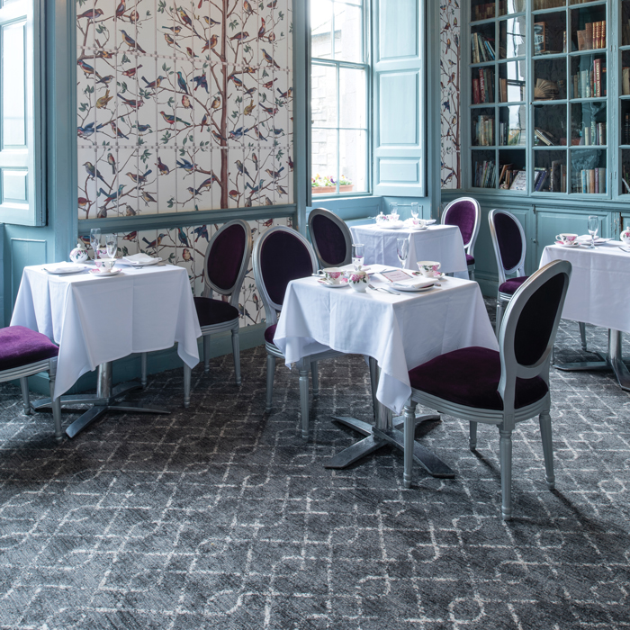 Vescent is part of the comprehensive contract stock collection from Ulster Carpets. Vescent Nexus features a beautifully structured design similar to fretwork that works perfectly in a bar or restaurant settings.