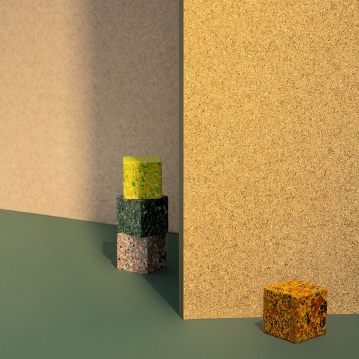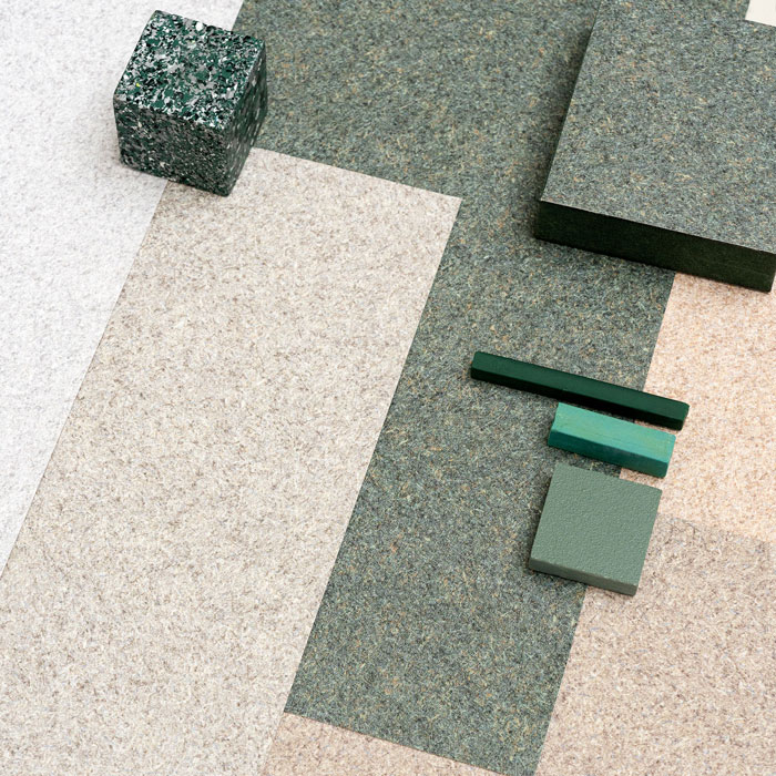 The pressed look of Fibras – which includes 20% recycled content – is a nod to the shredded waste material with which it’s partly made, revealing the feel of its former life.