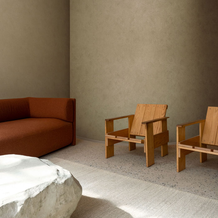 Its 14 soft colours and visible grain effect allude to anything from carved wooden structures to strands of fresh young straw to the wavelike imprints on a windswept sand dune – a reference heightened by Dunas’s extremely matte appearance.