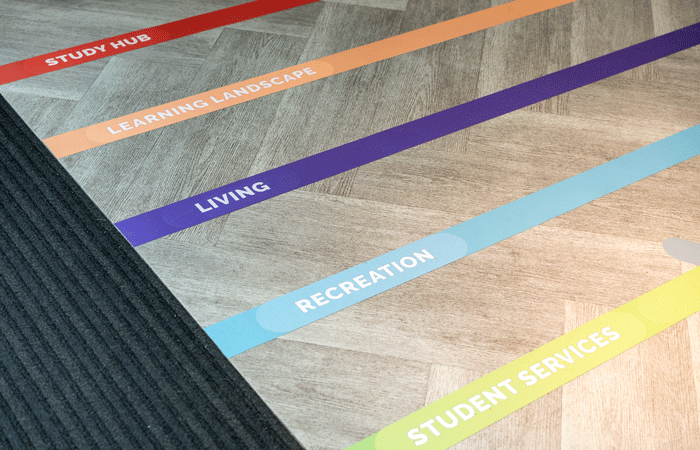 ‘Visitors are invited to explore a series of core zones that form part of the higher education experience. From quiet study areas to collaborative spaces, accommodation and dining areas, each zone is designed to showcase the latest in the design and functionality of learning spaces.’