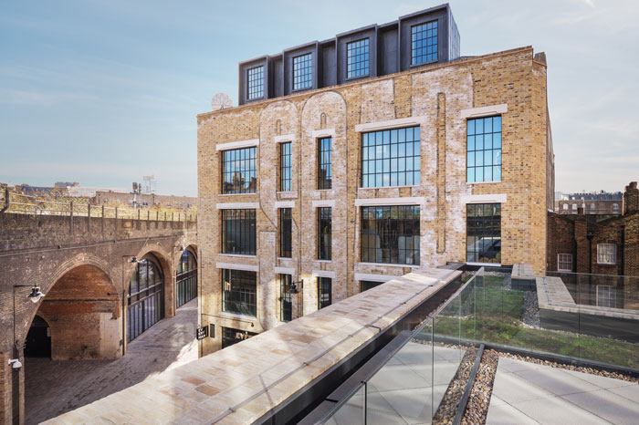 Wayfinding signage for tenants at Borough Yards are simple paper fly posters applied directly to the brickwork on site. This design is wonderfully tactical, accentuating the site’s signature material. f.r.a.’s design not only fits the brand but allows for rapid and economical updates to the signs addressing a very real design challenge for post-pandemic wayfinding.