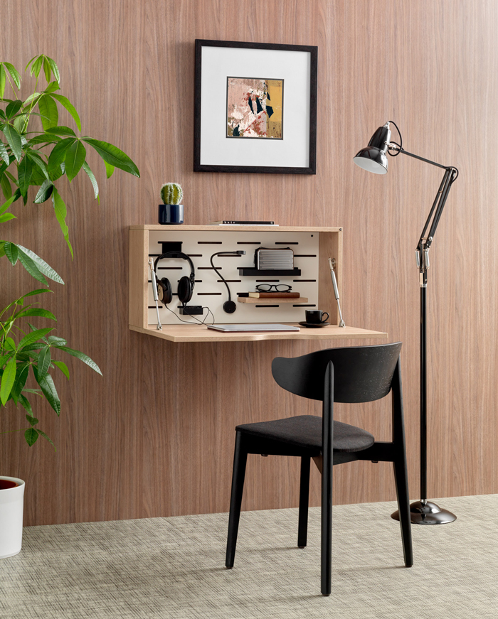 Hideaway Wall Desk – a space-saving, wall mounted desk that folds down to provide a practical worksurface, as well as somewhere to store your desk accessories.