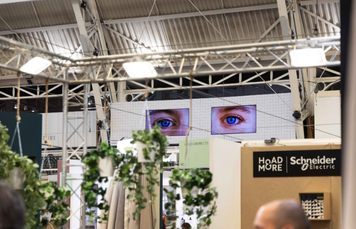Giant screens looped a close-shot video of eyes watching over the industry event — at once unsettling and magnetic, it piqued the interest of delegates who visited over the course of the two days. The monochrome palette for the space was equally striking, relating to the opposing positions in a culture clash and reflecting the theme of the event.