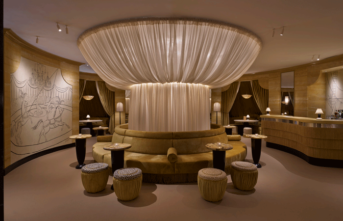 At Palomino, this thinking shaped the journey through the space. A deliberately compressed entrance created anticipation before opening into the circular form of The Grand Salon. Circular layouts, Tolù notes, naturally encourage sociability, widening sightlines and heightening awareness of others.