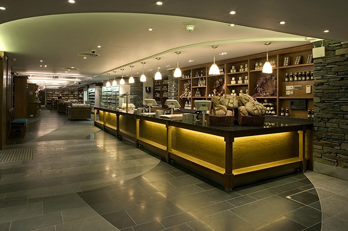 Cumbria based Burlington Stone’s highly-skilled stone engineers craft a diverse range of luxurious signature natural British stone products. This made them the natural flooring choice for Booths, a chain of high-end supermarkets in Northern England. A combination of three British stones were used to striking effect. All quarried from the heart of the English Lake District and formed around 450 million years ago during the Ordovician period.