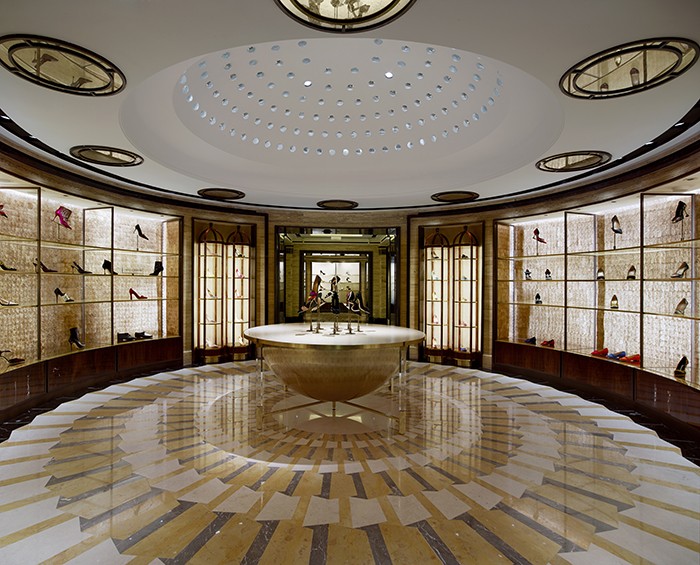 Different materials bring a different feeling to the space. Lewis will often use stone to infer luxury and to create a bold statement, such as at Harrods Shoe Heaven and in their Alexander McQueen stores. Timber can bring a warmth and heritage to a space, in their Louis Leeman store on Madison Avenue they used 400-year-old Parquet de Versailles to bring an authenticity to the concept.