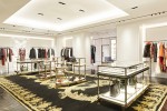 For their Alexander McQueen stores David Collins Studio worked with carpets in nude tones and reds to represent the womenswear and the menswear respectively. The pattern or language within the flooring was inspired by the work of Sarah Burton. The marble floor tiles were smashed and re-set to create a distressed pattern within the flooring in different black or white marbles depending on the store location and design. Lewis explains, “when we implemented the design in the Paris Flagship, we wanted to create something unique that represented the location – so we evolved the design and created a version of Parquet de Versailles that took the form of the smashed and re-set marble floor. Within the same store we used nude carpets and a custom Rug Company Alexander McQueen design Military Brocade rug that is very beautiful and refined and impressive in its size.