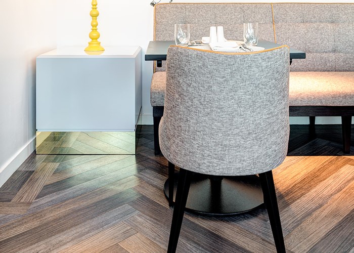 Amtico can also be found in the latest addition to Selfridges’ selection of eateries. Sears Balcony Champagne Bar resides on the fourth floor of the Birmingham store, with stunning views over the bustling shopping district it’s the the perfect spot to indulge in some luxury. Local design firm Harrison were tasked with updating an existing restaurant, working closely with Selfridges’ in-house team to create a haven in this busy department store. Amtico Signature Quill products in Sable, Kohl and Gesso have been used in a striking Herringbone pattern across the 220 sqm space.