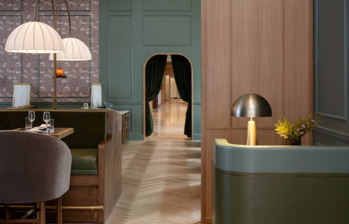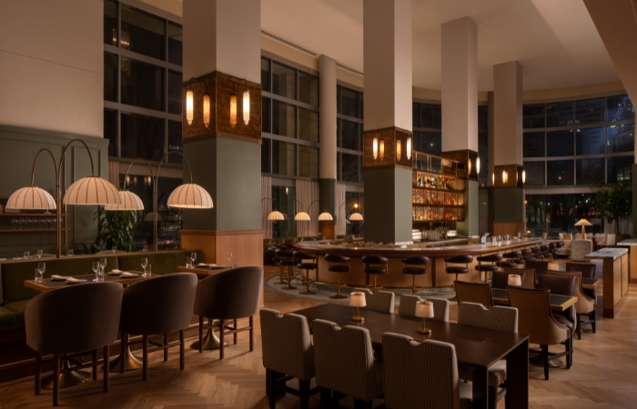 In the restaurants Dogwood and Beets, Woodura Herringbone provide a classic yet modern atmosphere while enduring the heavy foot traffic that comes with daily guest turnover. The durable surface ensures the floors retain their beauty over time with minimal upkeep – a critical factor for maintaining a polished aesthetic in high-use areas.