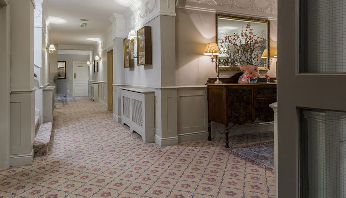 With the various patterns of existing carpets showing signs of wear on thresholds after 20 years of intense use, the time had come to replace and so Statham Lodge turned to the quality of wool-rich woven carpets from Wilton.